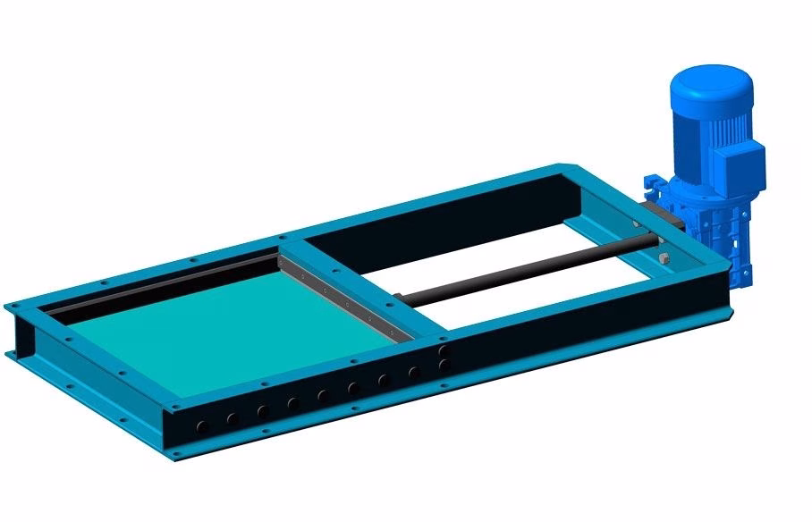 Выпуск сыпучего материала из бункера или ограничение его подачи. Затвор шиберный 3Ш-900х900-МЭП выполняет функцию регулирования либо полной блокировки потока веществ. Отличительной особенностью устройства является использование металлического ножа (пластины) в качестве запорного элемента.